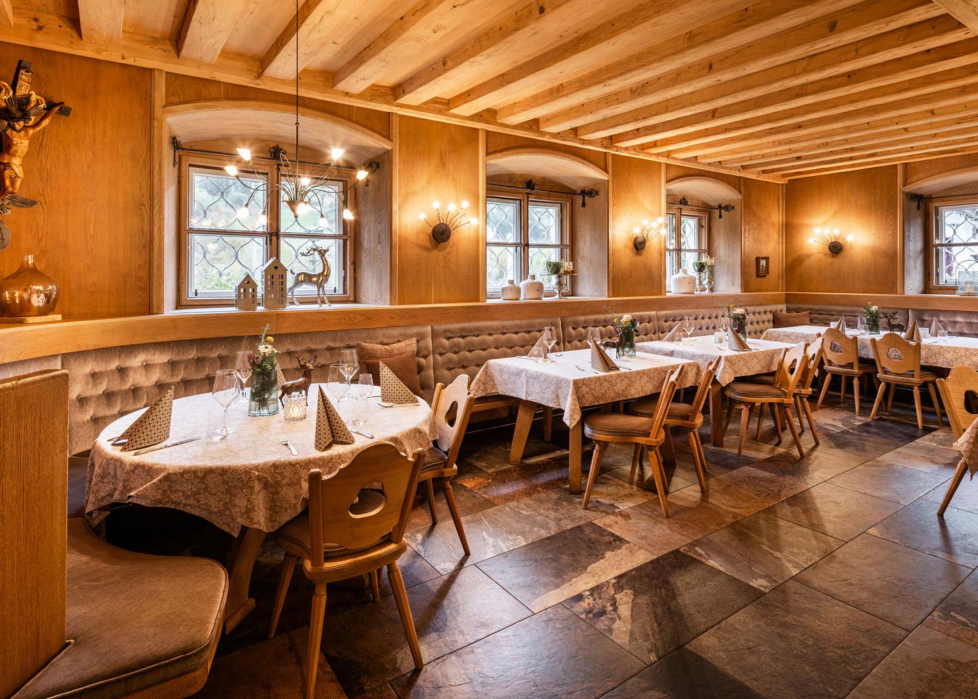 Genuss schreibt in den historischen Stuben und Gewölben sowie den ausgezeichneten Gastgärten Geschichte: Frönen Sie frischer Tiroler Wirtshauskultur vom Frühstück bis zum Dinner.